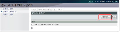 [설정/등록] → [디바이스 관리] → [감사 로그 내보내기/클리어] → [감사 로그 정보]를 클릭합니다.