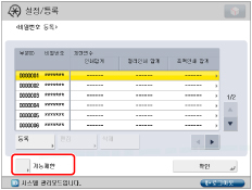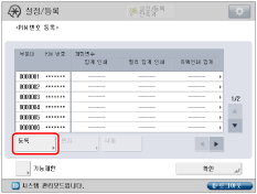 또는  를 계속 누르고 있으면 사용할 수 있는 부문 ID 페이지를 앞으로 또는 뒤로 빠르게 연속으로 스크롤할 수 있습니다. 원하는 페이지가 표시된 경우 버튼을 놓습니다. 연속 스크롤은 다수의 부문 ID가 등록되어 있는 경우 유용합니다. |