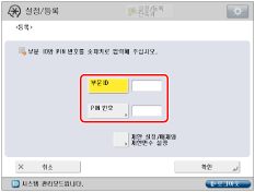 를 눌러 틀린 값을 삭제합니다. PIN 번호를 설정하지 않으려면 부문 ID만 입력하여 기기를 사용할 수 있습니다. |