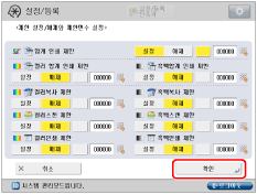 몇 기능 설정이 '해제'로 설정되어 있을 경우: