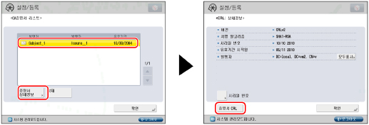 [관리설정] → [디바이스 관리] → [증명서 설정]을 누릅니다.