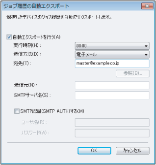 チェックすると、ジョブ履歴の自動エクスポートを行う