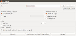 Lorsque vous cliquez sur le bouton [Imprimer], les paramètres définis s'appliquent uniquement au travail d'impression en cours. Lorsque vous cliquez sur le bouton [Imprimer et enregistrer les paramètres], les paramètres s'appliquent à l'impression du fichier et sont enregistrés en tant qu'attributs d'impression par défaut. Lorsque vous cliquez sur le bouton [Annuler], les paramètres ne sont pas modifiés. |