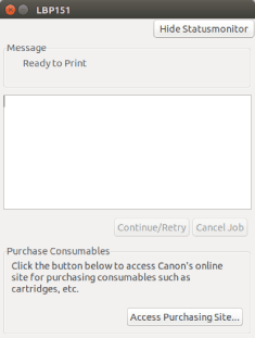 [Hide Statusmonitor] | The Status Monitor will be set to a non-displayed status by clicking this button and will appear only when an error occurs while printing. |