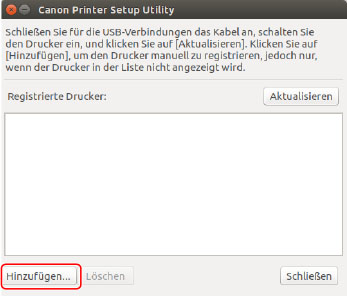 Wenn der Druckvorgang mit dem registrierten Drucker nicht ordnungsgemäß ausgeführt werden kann, verwenden Sie die Canon Printer Setup Utility, um den Drucker durch Klicken auf [Löschen] zu löschen und anschließend durch Klicken auf [Hinzufügen] erneut zu registrieren.