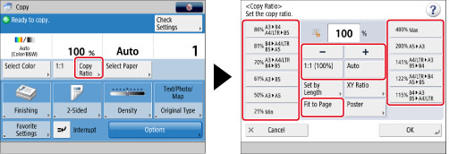 If you set [Auto], you have to select a paper size manually. If you do not select a paper size, the copy ratio is automatically set to match the size of paper loaded in paper drawer 1.