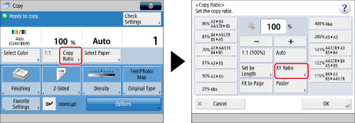 If you set the copy (zoom) ratio in [XY Ratio], the image of the original may be rotated before being printed. The machine calculates whether or not to do this based on the original size and the specified copy (zoom) ratio.