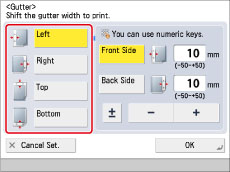 1-Sided 2-Sided: Set the Gutter mode for both the front side and back side.2-Sided 2-Sided: Set the Gutter mode for both the front side and back side.2-Sided 1-Sided: Set the Gutter mode for both the front side and back side. |