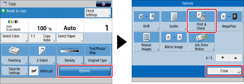 Place your original on the platen glass. You cannot copy using [Print & Check] with the originals set in the feeder.