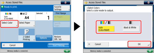 When printing CMYK files stored in mail boxes, only [Auto (Color/B&W)] can be selected. (To print black CMYK files, [Black & White] can also be specified.)