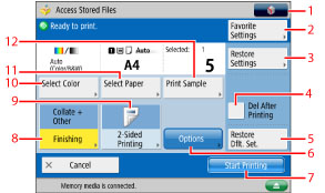 Press to print a sample of the file to check the print result or the contents of the file. |