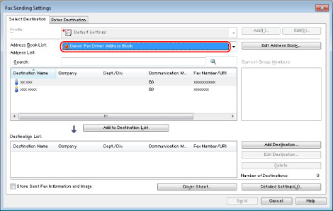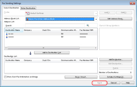 The number of destinations that you can send to at one time depends on the conditions under which the cover sheet has been attached. For details, view Help (see "Viewing Help").
