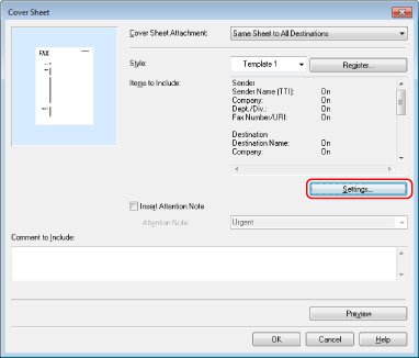 If you want to specify the items to include on the cover sheet, click [Settings].