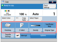 You can register modes in the shortcut keys displayed on the Copy screen. You can register up to five desired buttons from [Options] and [Favorite Settings].