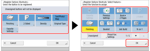 Press [Function Settings] → [Copy] → [Register Options Shortcuts].