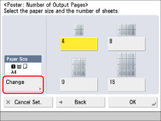 To cancel this setting, press [Copy Ratio] → [Poster] → [Cancel].