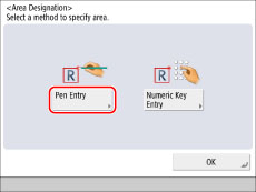 If you designate an area using the edit pen, the output image may not reflect the designated area precisely. To designate an area precisely, enter the values using the numeric keys.