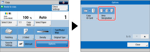 You cannot copy or scan documents with the Area Designation mode if you place your originals in the feeder.