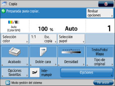 Si se ha activado [Gestión de ID de departamentos] o [Limitar funciones] para [Gestión de ID de departamentos], la pantalla de inicio puede ser diferente de la establecida para que aparezca como pantalla de inicio prefijada.