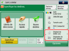 Puede guardar las teclas de acceso directo que se muestran en la pantalla Enviar. Puede guardar un máximo de dos botones desde [Opciones].