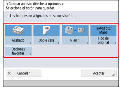 Seleccione el modo [Opciones] que desea asignar como acceso directo → pulse [Aceptar].