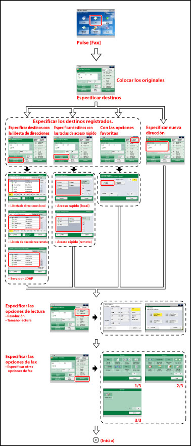 Se pulsa para enviar documentos directamente al destinatario. Si no se selecciona Envío directo, en su lugar se utiliza Envío desde memoria. (Consulte "Pasar a Envío directo".)