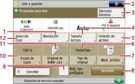 Acceda a esta pantalla cuando desee leer un original y guardarlo como archivo en la carpeta seleccionada.