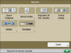 De manera predeterminada, se desactiva [Usar la función Lectura] en [Usar la función Lectura/Impresión]. Para leer originales a un dispositivo de memoria, active [Usar la función Lectura]. (Consulte "Opciones de dispositivos de memoria".)