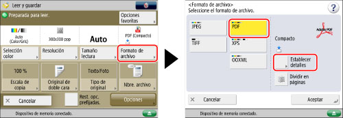 Este modo sólo está disponible para guardar archivos en el espacio avanzado de otro equipo imageRUNNER ADVANCE de la red o en dispositivos de memoria.