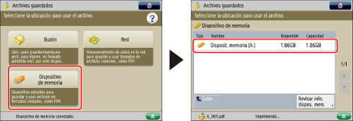 Seleccione la ubicación en la que está guardada el archivo que desee imprimir → seleccione el archivo deseado → pulse [Imprimir].