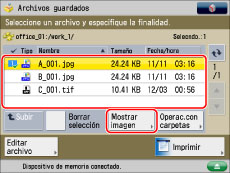 Si selecciona varios archivos, sólo aparece el contenido de los archivos seleccionados (resaltados).