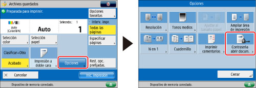 Pulse [Opciones] → [Contraseña abrir docum.].