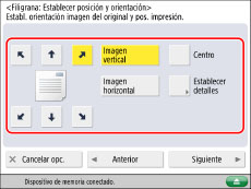 Si establece dos de los modos [Numerar páginas], [Numerar juegos cop.] o [Imprimir fecha] para imprimir en la misma posición, aparece un mensaje de confirmación al pulsar