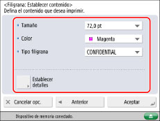 El texto que introduzca en [Person.] no se guarda automáticamente. Si desea guardar texto para seleccionarlo con las filigranas cuando lo necesite, pulse [Guardar] → introduzca el texto que desee guardar.