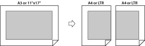 la imagen se imprime en dos hojas de papel que tienen el mismo tamaño combinado que el archivo recibido.