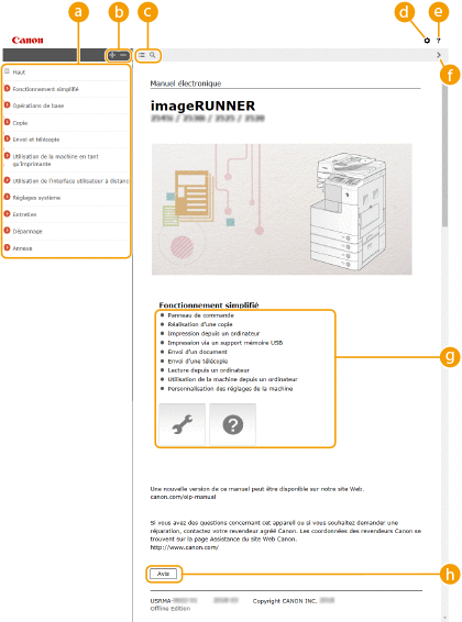 Elle s'affiche lorsque le Manuel électronique est lancé.