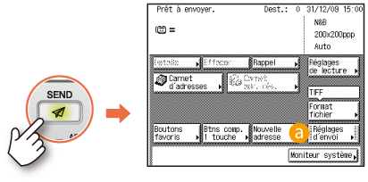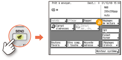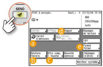 ] ou [ ] jusqu’à ce que [Ecran par défaut pour l’envoi] apparaisse → appuyez sur [Ecran par défaut pour l’envoi].![]() |