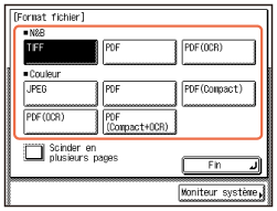 † Vous ne pouvez pas sélectionner le format de fichier lors de l’envoi de télécopies ou de télécopies IP.
