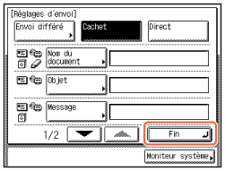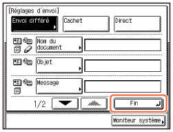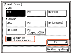 Si vous souhaitez scinder le document en plusieurs pages et envoyer chaque page séparément, appuyez sur [Scinder en plusieurs pages] → appuyez sur [Fin].