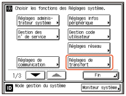 Appuyez sur [Réglages système]* → appuyez sur [Réglages de transfert].