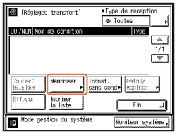 Appuyez sur [Mémoriser] → mémorisez les conditions de transfert et les destinataires comme indiqué sur l’afficheur tactile.