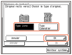 Sélectionnez [Type Livre] ou [Type Calendrier] → appuyez sur [OK] → appuyez sur [OK].