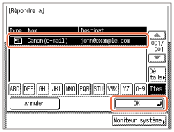 Sélectionnez l’adresse de réponse → appuyez sur [OK] → appuyez sur [Fin].