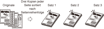 Betätigen Sie [Sortieren], [Gruppieren] oder [Heften].