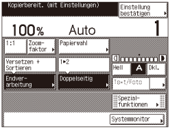 Geben Sie die zu speichernden Kopiereinstellungen in der Hauptanzeige und/oder in der Anzeige “Spezialfunktionen” an.
