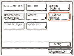 Betätigen Sie [Spezialfunktionen] → [Funktionsspeicher].
