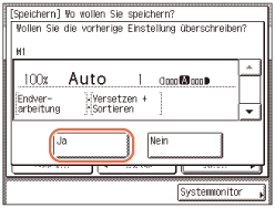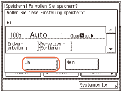 Um das Speichern der Einstellungen abzubrechen, betätigen Sie [Nein].