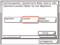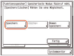 Betätigen Sie [Spezialfunktionen] → [Funktionsspeicher] → [Speichern/Löschen].