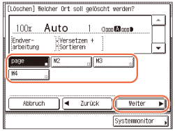 Wählen Sie die Taste mit den Kopiereinstellungen, die Sie löschen möchten → betätigen Sie [Weiter].