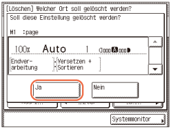 Um das Löschen der Einstellungen abzubrechen, betätigen Sie [Nein].